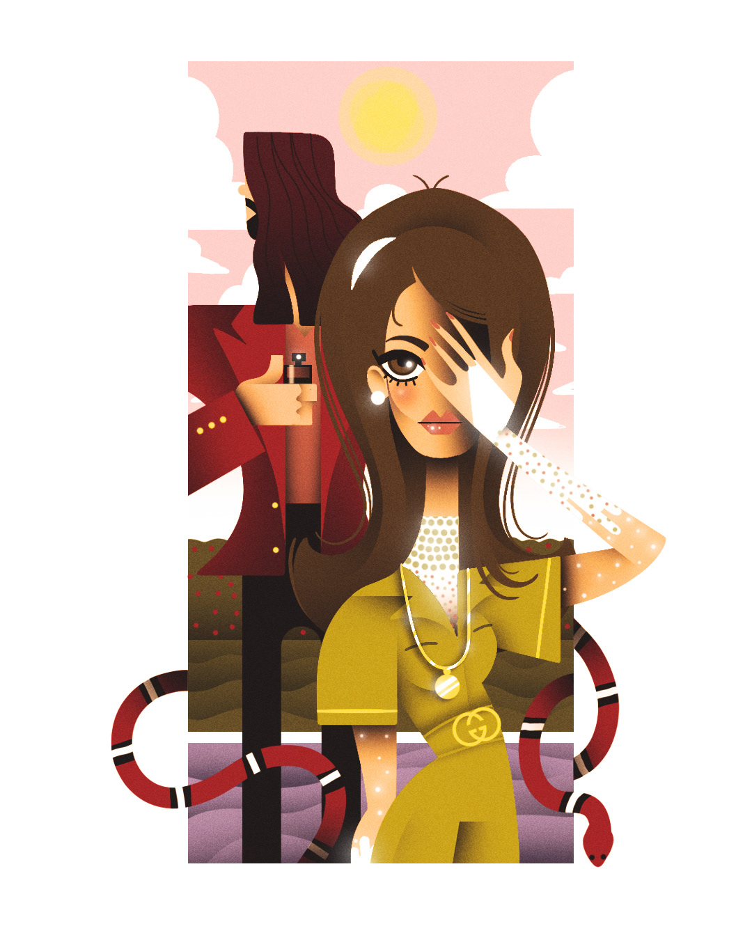 Editorial illustration based off the Gucci Guilty campaign with Lana Del Rey and Jared Leto.